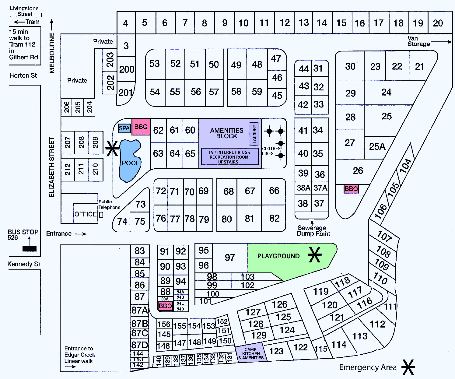Melbourne BIG4 Park Map Accommodation Caravans Camping