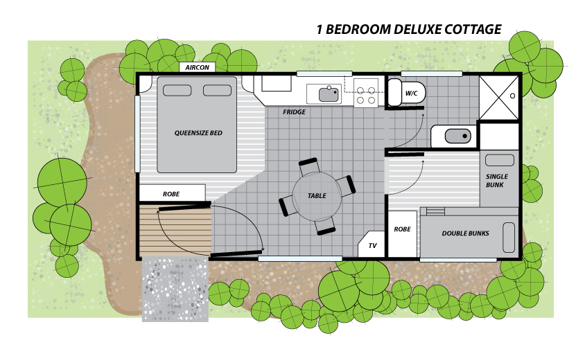 Melbourne BIG4 One Bedroom Deluxe Cabin Floor Plan