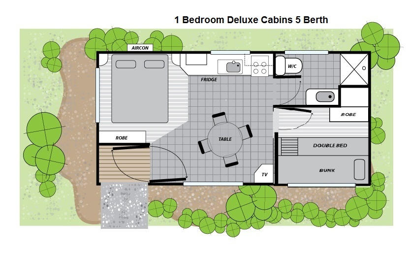 Melbourne BIG4 One Bedroom Cabin Sleeps 5 Floor Plan
